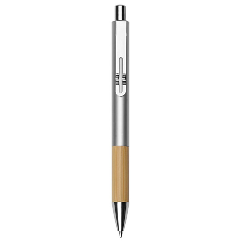 Ручка шариковая металлическая с бамбуковой вставкой. Гравировка (CO2 лазер) (Без чернения) на данный товар осуществляется бесплатно. Оплачивается только настройка оборудования в размере 2700 рублей на весь тираж.