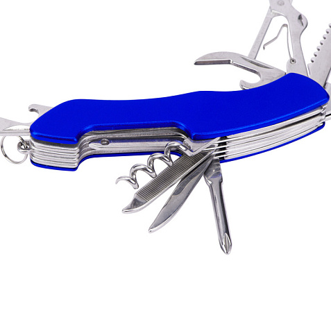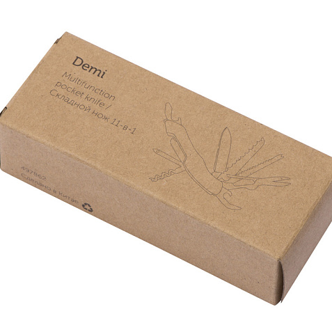 Cскладной нож-мультитул 11-в-1 Demi выполнен из нержавеющей стали. Поставляется в нейлоновом чехле. 1. Нож 2. Пила 3. Пила-серрейтор 4. Ножницы 5. Консервный нож 6. Плоская отвертка и открывалка для банок 7. Крестовая отвертка 8. Нож для писем 9. Пилка для ногтей 10. Шило 11. Штопор Гравировка (оптоволоконный лазер) (Без чернения) на данный товар осуществляется бесплатно. Оплачивается только настройка оборудования в размере 2700 рублей на весь тираж.
