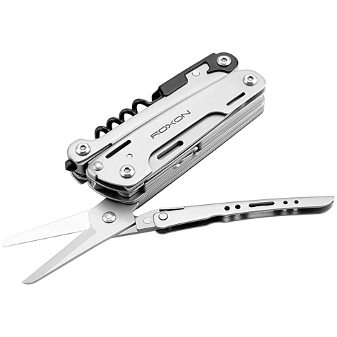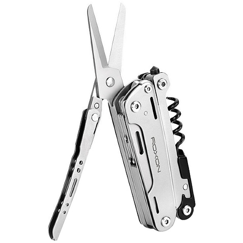 В комплекте мультитул, чехол и набор из 10 съемных бит.