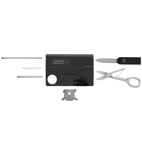 Victorinox SwissCard Lite — многофункциональный инструмент с набором из 13 функций, который по размеру соответствует привычной пластиковой карточке и легко помещается в отделении для карточек в портмоне.