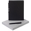 Удобный ежедневник с гибкой обложкой и местом под ручку в корешке, миниатюрная ручка из переработанного пластика и компактная самосборная коробка — простые составляющие полезного делового набора.