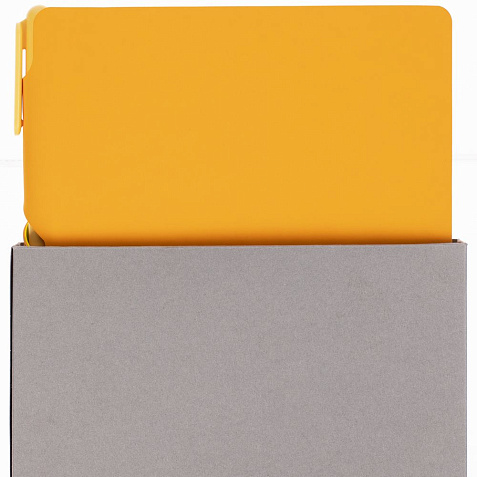 Удобный ежедневник с гибкой обложкой и местом под ручку в корешке, миниатюрная ручка из переработанного пластика и компактная самосборная коробка — простые составляющие полезного делового набора.