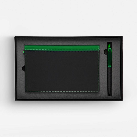 Стильный двухцветный ежедневник с гибкой обложкой и цветным обрезом, а также ручка в тон.