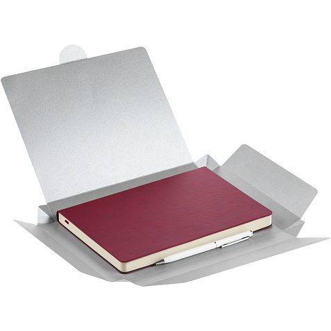 Недатированный ежедневник с гибкой обложкой из материала Latte с ляссе в цвет обложки, а также ручка в тон — в подарочной коробке из дизайнерского картона.