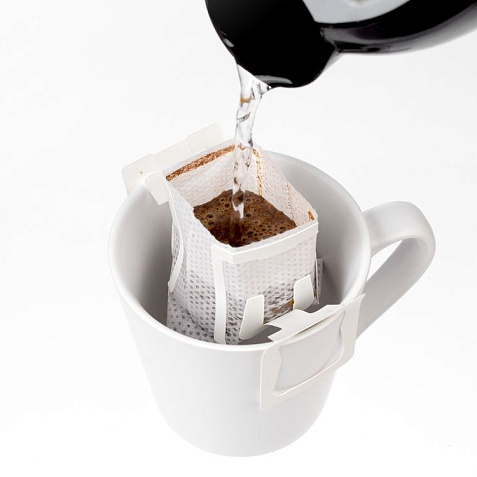 Дрип-пакет — легкий способ альтернативного заваривания натурального кофе прямо в чашке. Вам потребуются только любимая кружка и горячая вода: вскройте фильтр-пакет по линии отрыва, разместите его на чашке и медленно пролейте 150-200 мл воды через молотый кофе. Если хотите получить напиток покрепче — оставьте дрип в кружке на 2-3 минуты.