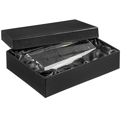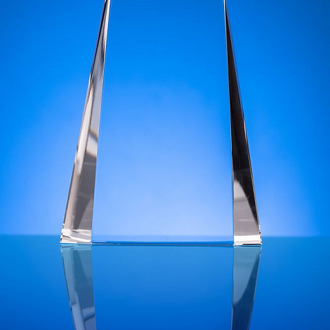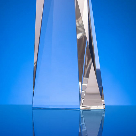 Стела изготовлена из стекла К9, в основе которого лежит оптическое боросиликатное стекло. Эту марку стекла отличает низкий процент посторонних включений, высокий показатель преломления и высокая прозрачность — идеальные качества для изготовления наград премиального уровня.