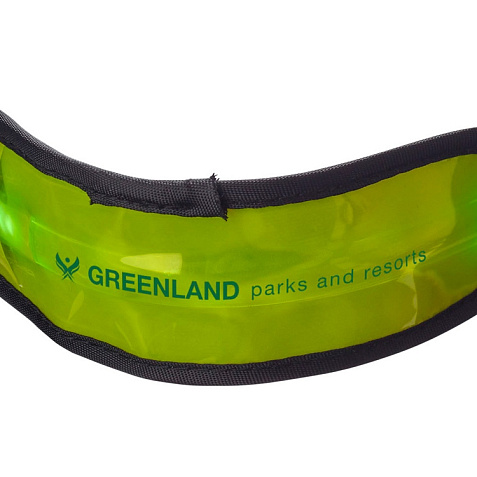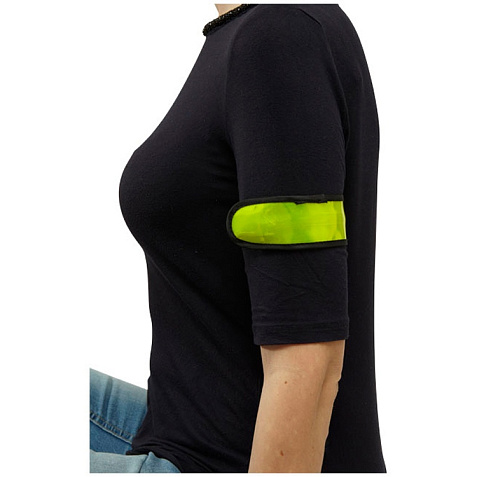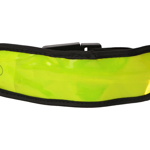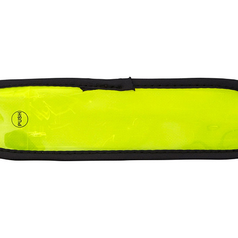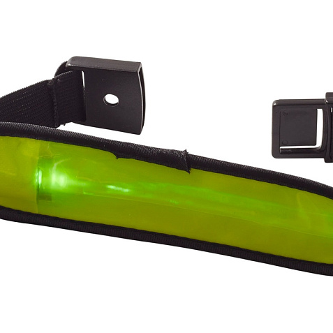 Диодный браслет Olymp. Регулируемый эластичный диодный браслет для видимости на улице с кнопкой для переключения режимов мигания, быстрого мигания, обычного света или выключения. Батарейки в комплекте. ПВХ.