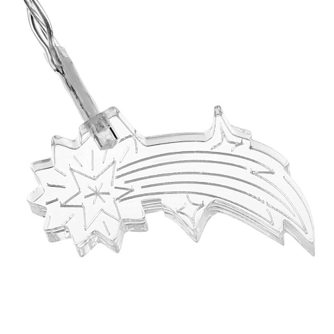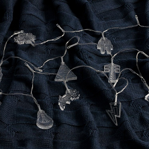 Гирлянда состоит из 20 светодиодов с холодным светом и 10 акриловых фигурок.
