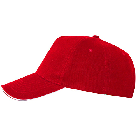 Бейсболка из 5 панелей с контрастным сэндвичем. Четыре вышитых вентиляционных люверса. Застежка на липучку.