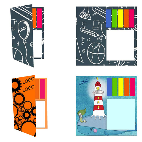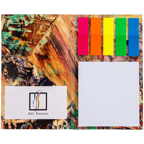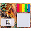 - Блок с клеевым слоем 7х7,5 см, 50 листов; пластиковые закладки 1,2х4,3 см, 5х25 листов.