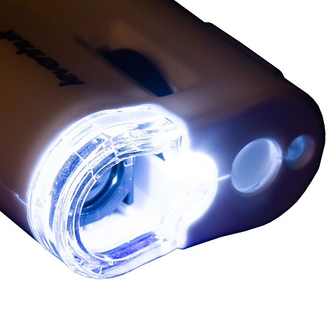 Микроскоп может применяться как для проверки подлинности денежных знаков, так и для обычных визуальных наблюдений. Увеличение оптики составляет 60 крат. Интенсивность работы подсветки можно регулировать переключателем на корпусе. Настройка резкости выполняется с помощью удобного крупного колеса грубой фокусировки.В комплект входит чехол из полиэстера.