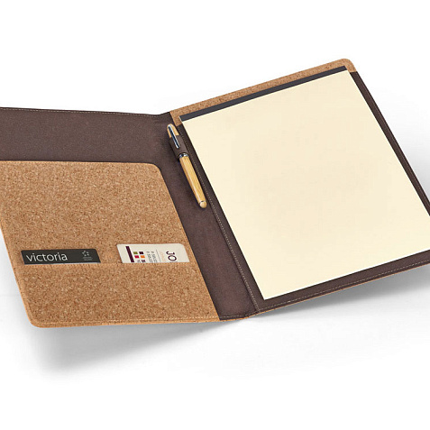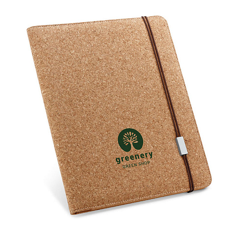 Папка A4 из натуральной пробки, с блокнотом из 20 чистых листов слоновой кости, держателем для шариковой ручки (ручка не входит в комплект) и резинкой. Поставляется в нетканом чехле. 239 x 307 x 17 мм | Сумка: 285 x 350 мм. Вид нанесения, рекомендуемый поставщиком: трансфер, гравировка, трафаретная печать.