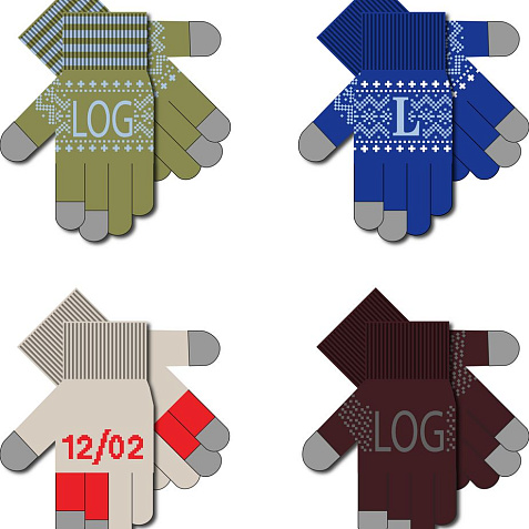 Модель: цельновывязанные бесшовные перчатки с эластичной манжетой и жаккардовым узором в 2-3 цвета. Три пальца: средний, указательный, большой — вяжутся с использованием токопроводящей нити. Манжета может быть полосатой (только горизонтальные полосы 1-2 цветов, без узора и логотипа).