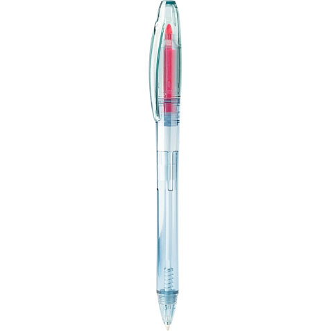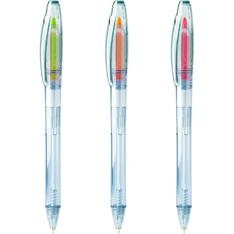 Ручка/маркер с синим прозрачным корпусом и маркером доступна в трех флуоресцентных цветах.