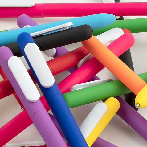 Ручка из пластика с покрытием софт-тач и белым глянцевым клипом.