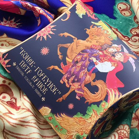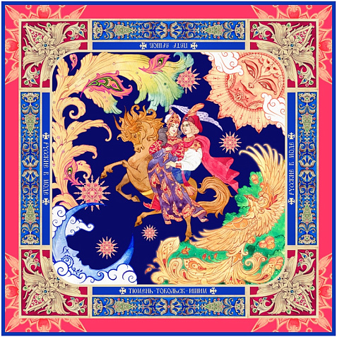 За горами, за лесами, За широкими морями, Не на небе - на земле Жил старик в одном селе… Известные каждому напевные строки сказки Конек-Горбунок неизменно возвращают нас в волшебный мир детства. Их автор – Петр Ершов – родился в 1815 году в маленьком селе Безруково Ишимского уезда Тобольской губернии, и, будучи еще совсем молодым, яркой звездой взошел на литературном небосклоне России. Прочитав сказку юного дарования, сам великий Александр Сергеевич Пушкин сказал: Этот род сочинений я могу теперь оставить - и Петр Ершов был принят в круг петербургских писателей.В этом году сказке из золотого фонда русской литературы, переведенной на все языки мира, исполняется 185 лет. Ее яркие краски мы перенесли на шелк и создали платок Конек-Горбунок. Благодаря тонкой работе дизайнера, со страниц книги, как живые, сошли герои любимой с детства истории: Иван, прекрасная Царь-девица и волшебный Конек-Горбунок. А в роскошных орнаментах сплелись легендарное перо Жар-птицы, Красное Солнышко и Месяц… Пусть этот платок принесет в Вашу жизнь немного чуда и наполнит ее вдохновением! Над дизайном работали: Мила Лосенко, Нина Ручкина. Советы по уходу: -Наши платки сделаны с душой и нуждаются в ответной душевной заботе и внимании. -Они практически не мнутся, очень приятные на ощупь, нежные и мягкие. Любят бывать на людях, посещать светские мероприятия, не выносят одиночества. -Всегда готовы к экспериментам и смелым сочетаниям. Прослужат верой и правдой долгие годы, никогда не выйдут из моды и всегда будут уместны и кстати. -Ручная стирка 40 градусов.