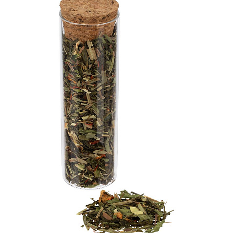 - чай зеленый ароматизированный «Хорошее настроение» (состав: зеленый чай сенча, лимонная трава, календула, мята, сушеное яблоко, сушеный апельсин, сушеная клубника, ароматизатор «лайм», ароматизатор «мята»), вес 25 г.