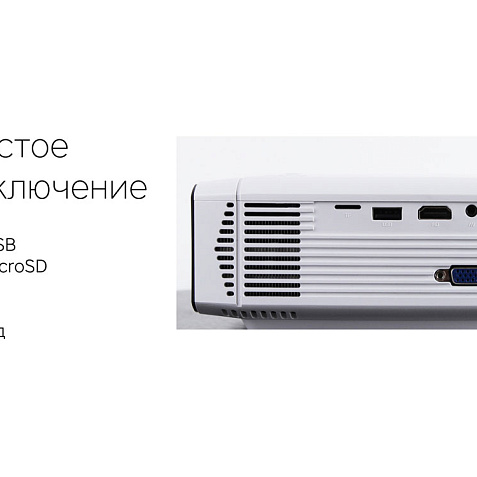 HDMI, VGA, USB Type-A 2.0, microSD(HC), AV, AC-in, аудиовыход 3,5 мм