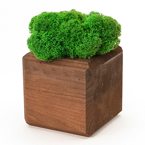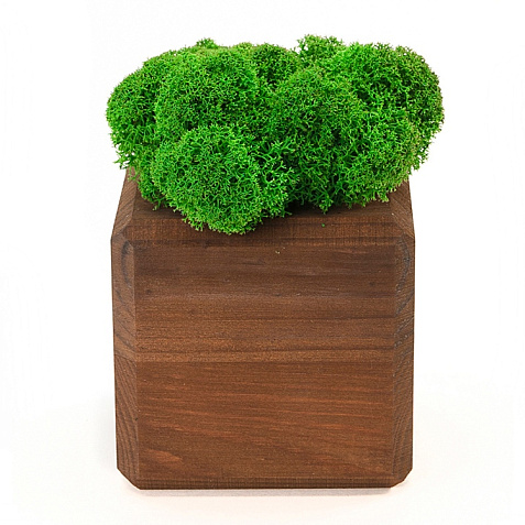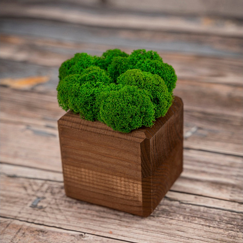 кашпо деревянное из массива, стабилизированный мох