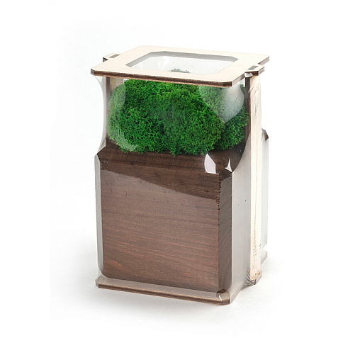 Композиция со мхом создана для любителей официального стиля. Зелень и дерево в интерьере - популярный тренд в области украшения дома или офиса. Специальная обработка мха позволяет не ухаживать за ним до 7 лет. Композиция не требует освещения и полива, успокаивает и дарит положительные эмоции. Изделие состоит из стабилизированного мха ягеля, деревянного куба и деревянного упаковочного каркаса. Отталкивает пыль и придает интерьеру индивидуальность. Размер изделия 8х8х13 см. Гравировка (CO2 лазер) (Без чернения) на данный товар осуществляется бесплатно. Оплачивается только настройка оборудования в размере 2700 рублей на весь тираж.
