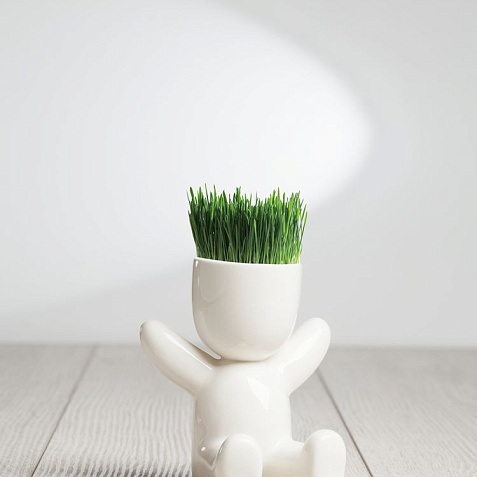 Фигурки Funky — экологичное украшение интерьера, кусочек зеленого газона в офисе или дома. Посадите волосы-травинки и наблюдайте, как меняется человечек. Вы можете сделать ему стильную стрижку, добавить настроения, нарисовав маркером лицо, — и поменять образ, когда трава снова подрастет.