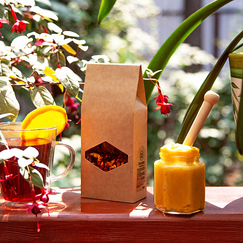 Авторский купаж на основе гибискуса и восточных пряностей с добавлением кусочков фруктов. Ароматная фруктово-пряная смесь предназначена для приготовления безалкогольного глинтвейна. Также подходит для классического исполнения в сочетании с красным вином. Рекомендуется добавление сахара, меда или других подсластителей.