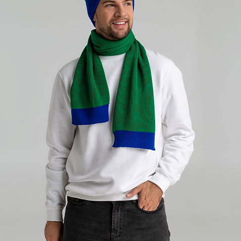 Двухслойный шарф фактурной вязки с контрастной отделкой.