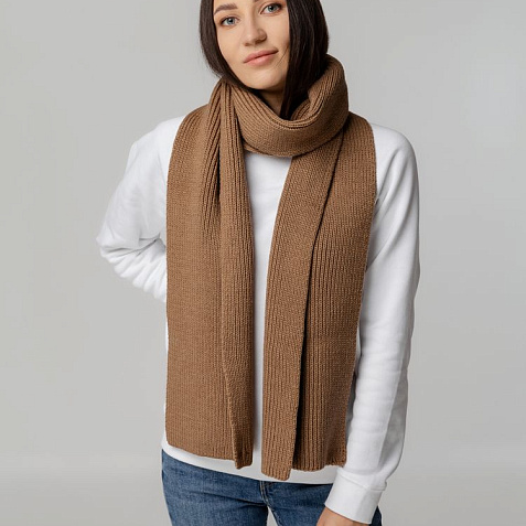 Шарф Tommi из полушерстяной пряжи актуальных приглушенных оттенков сочетает в себе комфорт и стиль, идеален для создания расслабленного повседневного образа.