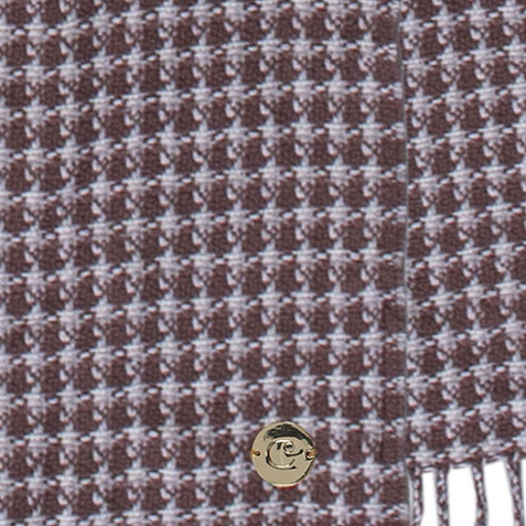 Шарф  из высококачественной шерсти с бахромой и узором «гусиная лапка» украшен золотистой эмблемой бренда Cacharel.Поставляется в подарочной упаковке.