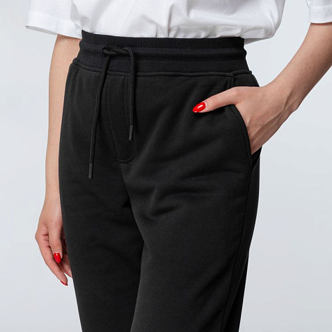 Два боковых кармана, задний накладной карман. Эластичный пояс с утягивающим шнуром. Манжеты по низу изделия. Внутренняя сторона с начесом.