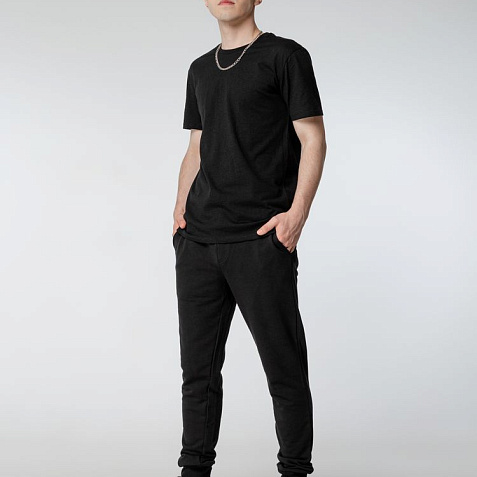 Два боковых кармана, задний накладной карман. Эластичный пояс с утягивающим шнуром. Манжеты по низу изделия. Внутренняя сторона без начеса.