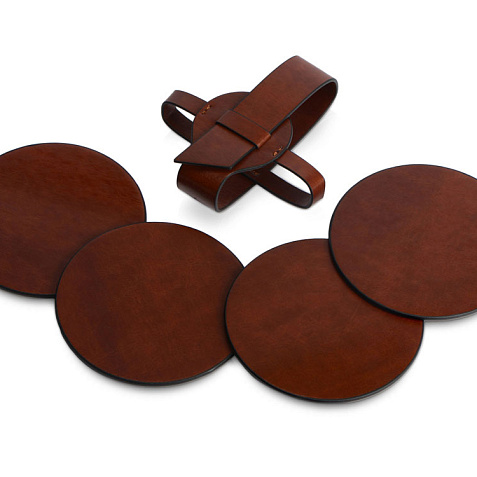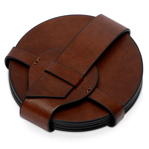 Продукция линейки Fabrizio выглядит элегантно и богато, а ее ассортимент состоит из разнообразных товаров, обладающих фамильным лоском Fabrizio. Все товары выполнены из PU-кожи, искусственного материала, который напоминает натуральную, но создан с любовью к природе - при создании продукции Fabrizio ни одно животное не пострадало. Материал прекрасно подходит для тиснения, которое особенно выигрышно будет смотреться на столь роскошных аксессуарах. Набор состоит из четырех подставок и ремня-чехла, с помощью которого костеры очень удобно хранить в одном месте. Подставки круглой формы идеально подойдут для бокалов разного диаметра. Универсальная форма, легко моющийся материал, персонализация на самих костерах, а также ремешке. Тиснение (Блинт) на данный товар осуществляется бесплатно. Оплачивается только настройка оборудования в размере 8700 рублей на весь тираж.
