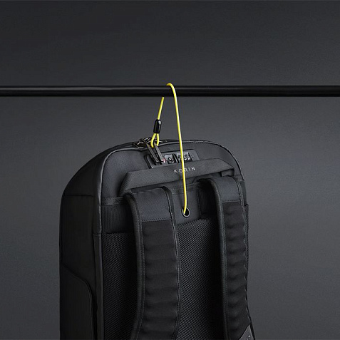 • Трос, которым можно обхватить неподвижный предмет и затем фиксировать бегунком молнии в кодовом замке. Трос выдерживает нагрузку до 50 кг