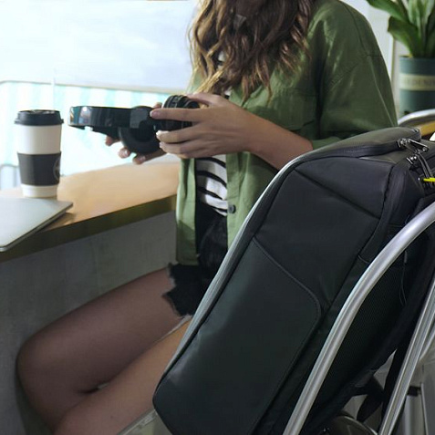 • Вентилируемая мягкая спинка из специальной устойчивой к разрыву ткани с карманом на магнитной застежке для телефона или портмоне