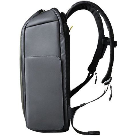 • 2 боковых кармана с быстрым доступом благодаря клапанам на сильных магнитах: один карман с дополнительной специальной водозащитой для термокружки, бутылки с водой или зонта, второй карман для мелкой электроники с дополнительной регулируемой мягкой перегородкой на липучке