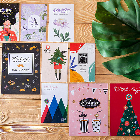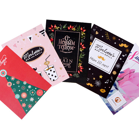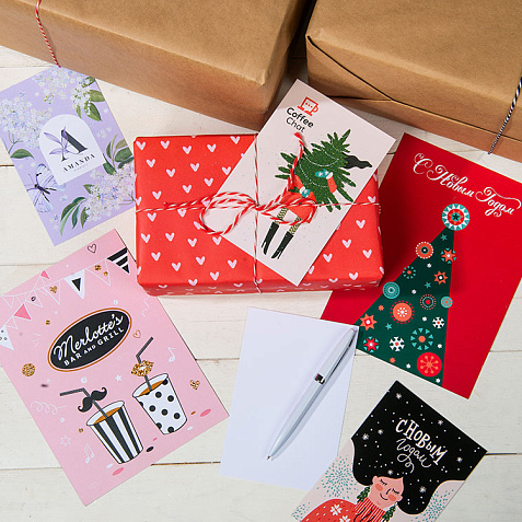 Внимание к деталям дополнит образ фирменного подарка: укомплектуйте выбранные сувениры с логотипом фирменной открыткой в конверте. У нас вы можете заказать и полиграфию!