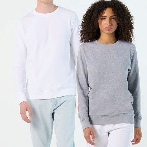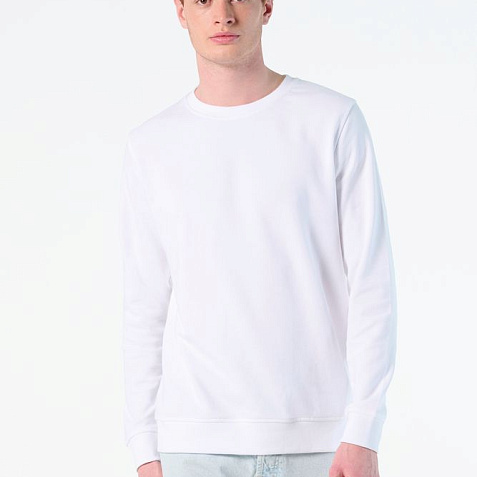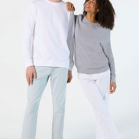 Свитшот унисекс из органического хлопка с круглым вырезом и втачным рукавом. Лейбл производителя в боковом шве изнутри, в шве горловины — только бирка с размером, что позволяет вам нанести свой логотип.