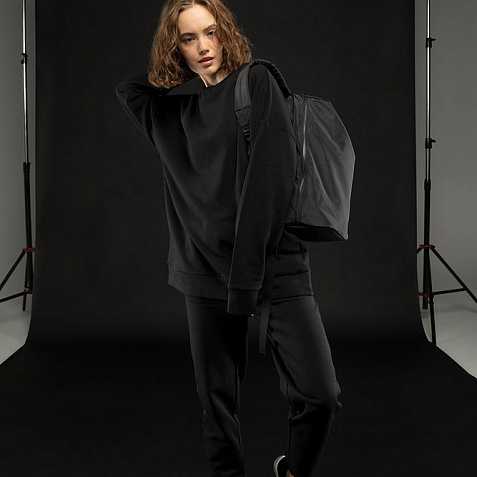 Свитшот унисекс свободной посадки со спущенным плечом.