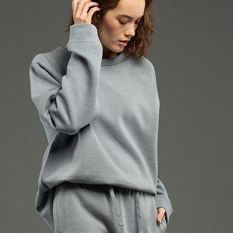 Свитшот унисекс свободной посадки со спущенным плечом.
