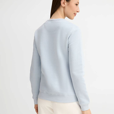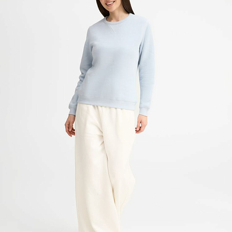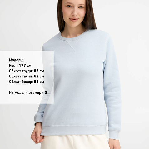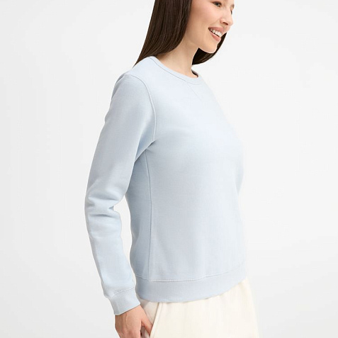 Женская утепленная толстовка с круглым вырезом и декоративной треугольной вставкой. Лейбл производителя в боковом шве изнутри, в шве горловины — только бирка с размером, что позволяет вам нанести свой логотип.