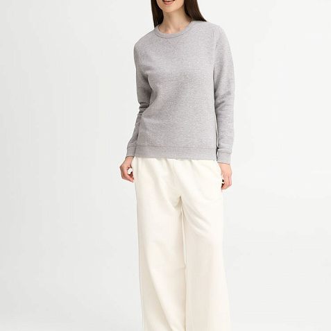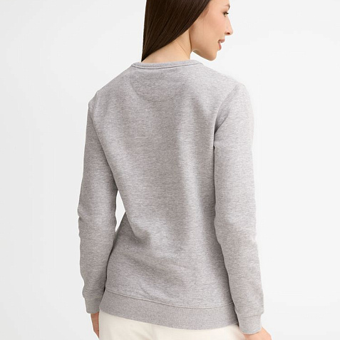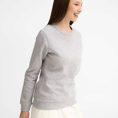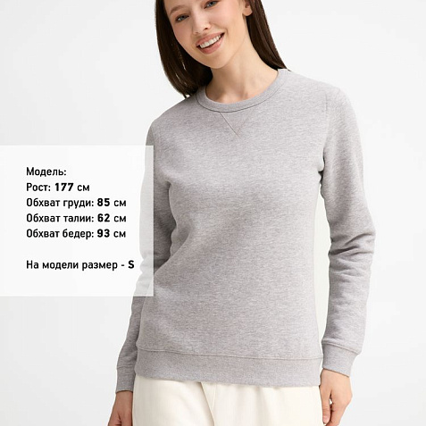 Женская утепленная толстовка с круглым вырезом и декоративной треугольной вставкой. Лейбл производителя в боковом шве изнутри, в шве горловины — только бирка с размером, что позволяет вам нанести свой логотип.