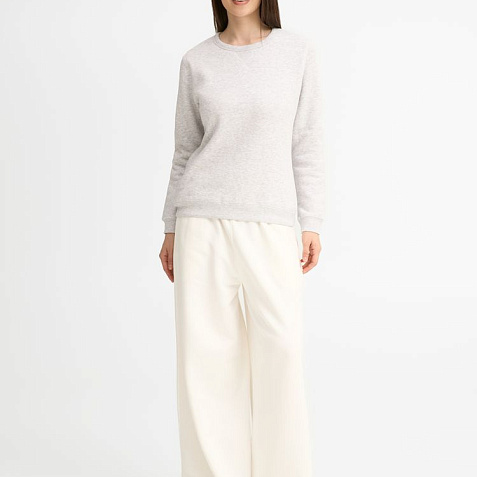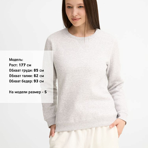 Женская утепленная толстовка с круглым вырезом и декоративной треугольной вставкой. Лейбл производителя в боковом шве изнутри, в шве горловины — только бирка с размером, что позволяет вам нанести свой логотип.