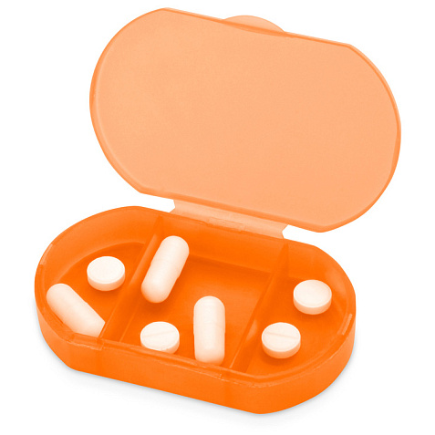 Компактная таблетница выполнена из прочного полупрозрачного пластика, имеет три отделения.
