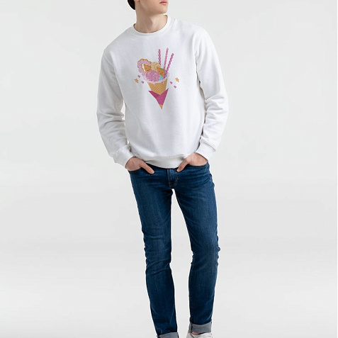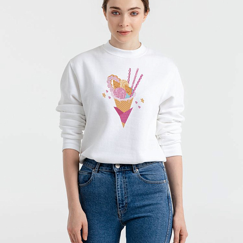 Толстовка унисекс с втачными рукавом. Изнанка: мольтон с начесом. Укрепляющая тесьма по вороту, манжеты, ворот и низ толстовки связаны резинкой с эластаном.