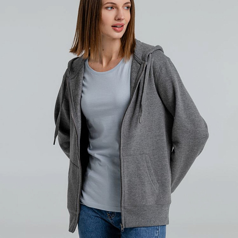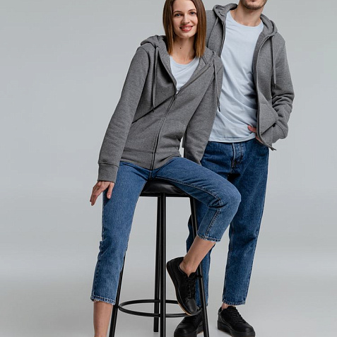 Толстовка на молнии с капюшоном унисекс King, темно-серый меланж