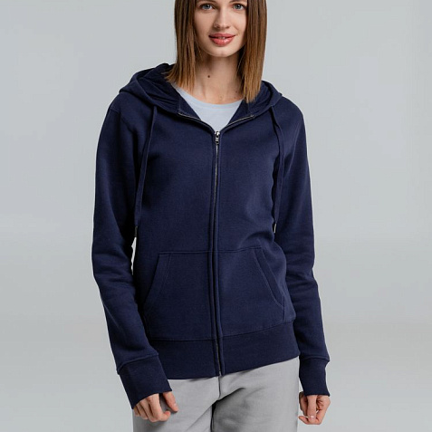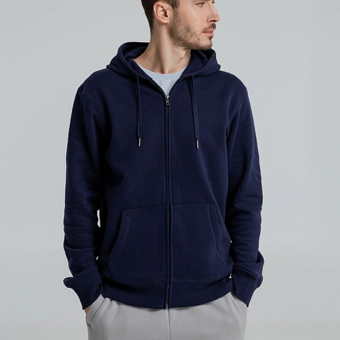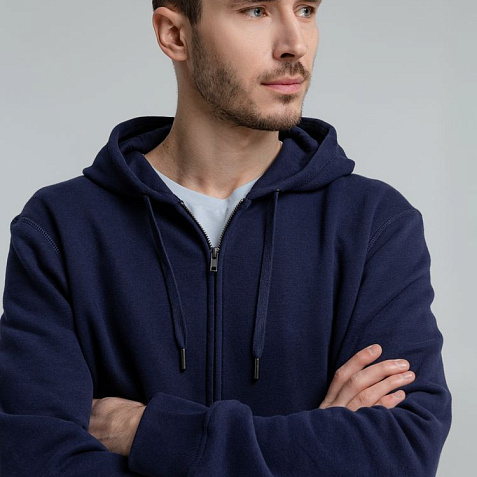 Толстовка на молнии с капюшоном унисекс King, темно-синяя