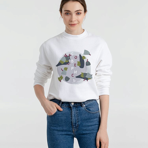 Толстовка унисекс с втачным рукавом. Изнанка: мольтон с начесом. Укрепляющая тесьма по вороту, манжеты, ворот и низ толстовки связаны резинкой с эластаном.