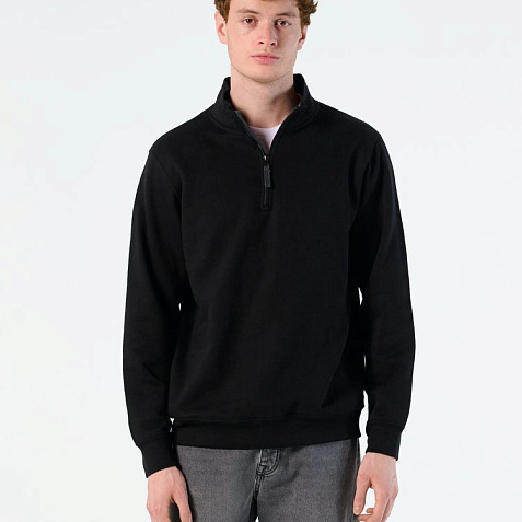 Толстовка с воротником-стойкой на молнии. Лейбл производителя в боковом шве изнутри, в шве горловины - только бирка с размером, что позволяет вам нанести свой логотип.