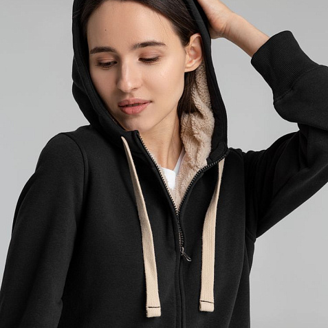 • Широкий съемный шнурок контрастного цвета на капюшоне