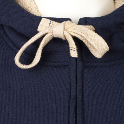 - Широкий съемный шнурок контрастного цвета на капюшоне